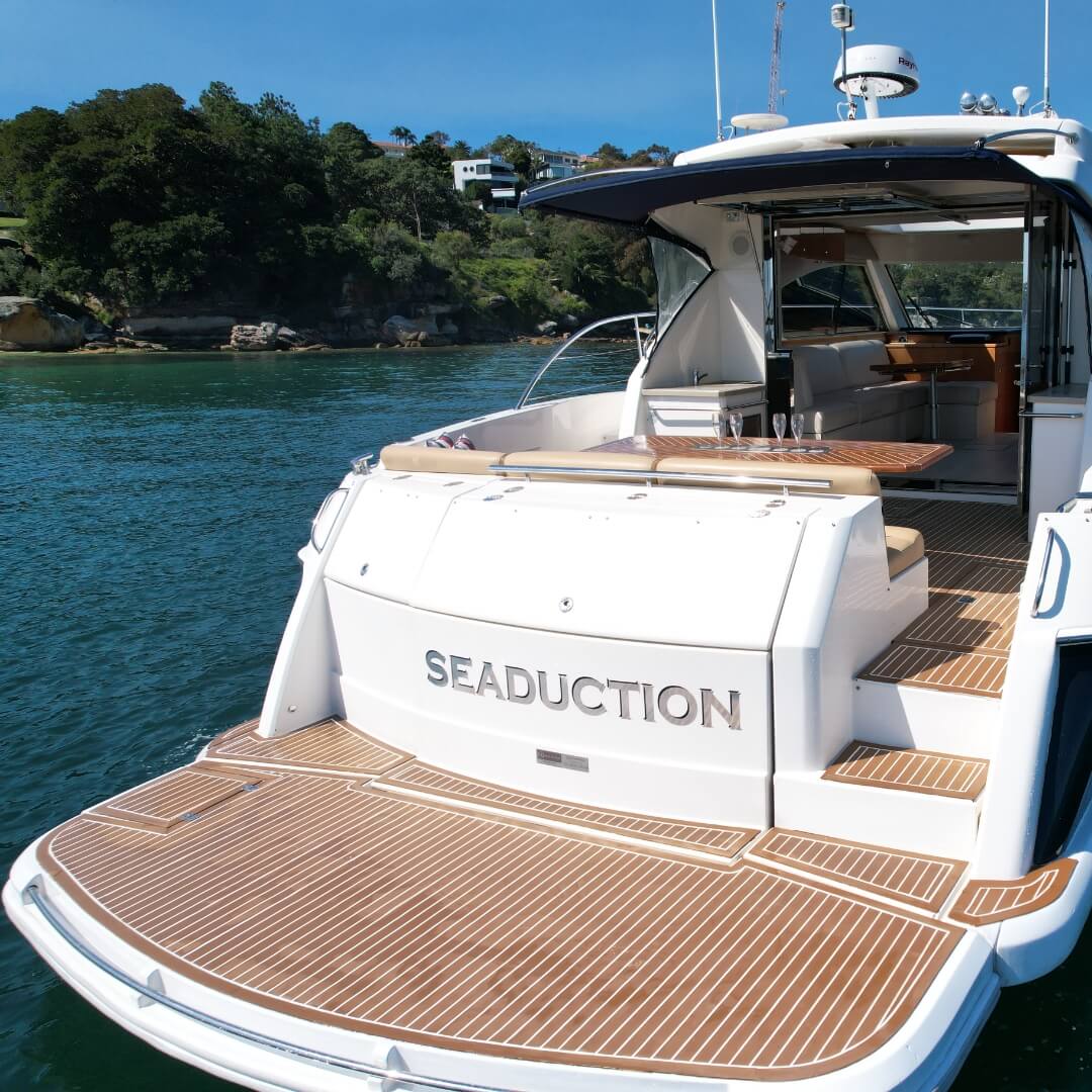 SEADUCTION is Sydney’s premium Riviera Motor Yacht. With a stunning combination of elegance, comfort, and adventure, she offers an unforgettable experience as you cruise Sydney Harbour.
